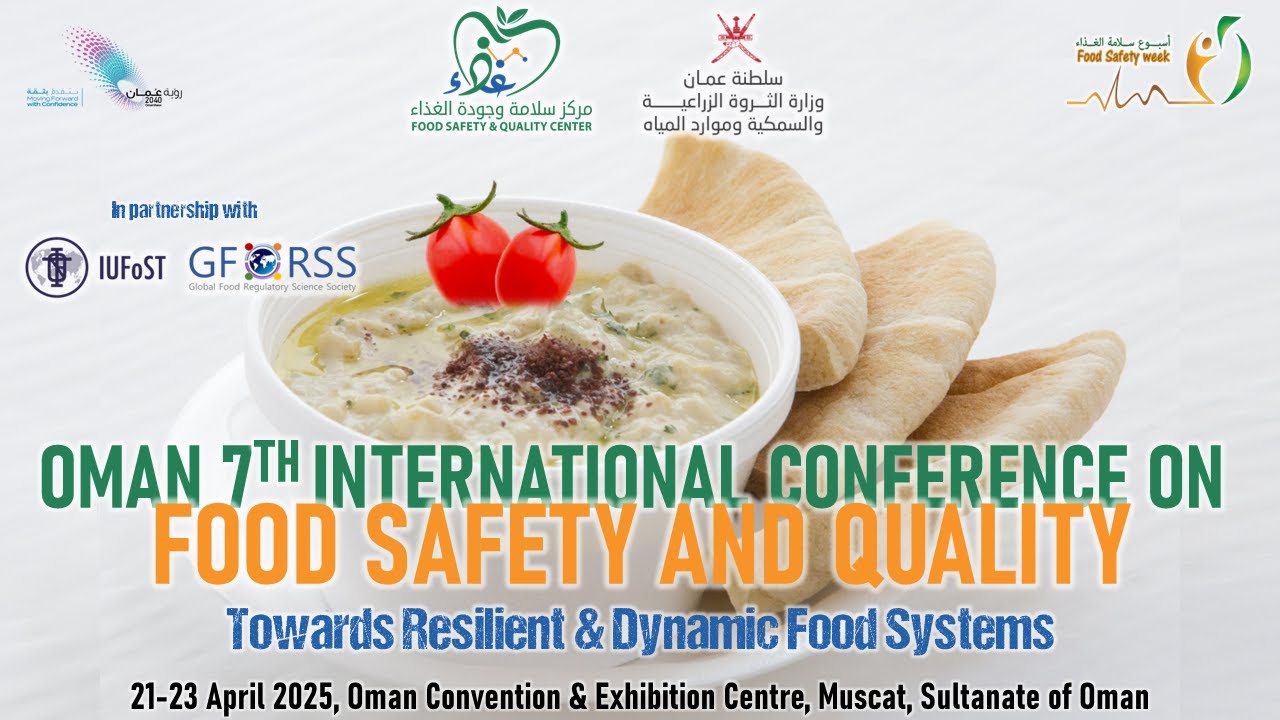 تستعد سلطنة عُمان، ممثلة بوزارة الثروة الزراعية والسمكية وموارد المياه، لإطلاق فعاليات مؤتمر عُمان الدولي السابع لسلامة وجودة الغذاء، وذلك في الفترة من 21 إلى 23 أبريل 2025، بمركز عُمان للمؤتمرات والمعارض في مسقط.